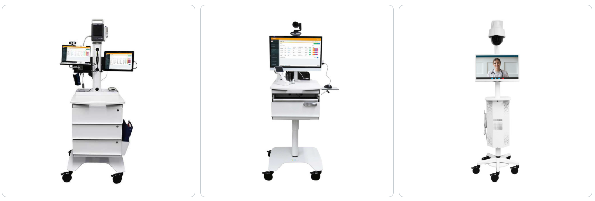 - Versatile Telemedicine Carts: Just as in remote areas outside a clinic or hospital, carts that can be easily moved between patient rooms and departments can be a big plus.